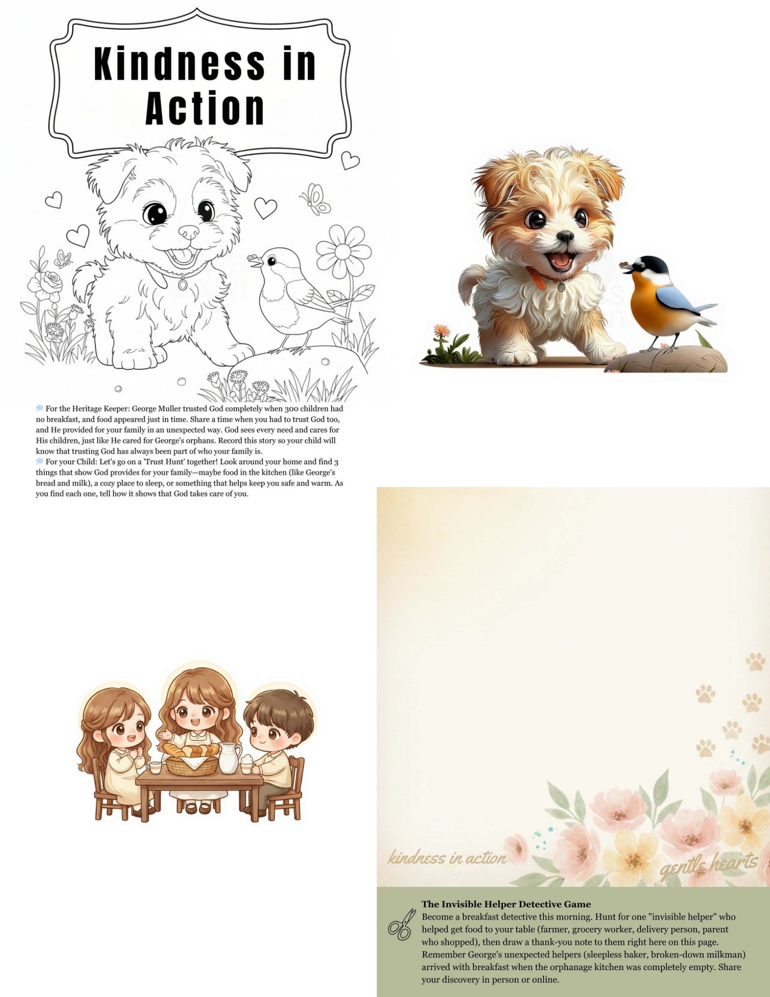 - “The Breakfast That Wasn’t There” – George Muller heritage story with gentle puppy illustration